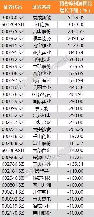 其中易成新能預(yù)告凈利潤(rùn)同比下滑逾50倍,ST信通、吉電股份、銀星能源等同比下滑超過(guò)20倍。