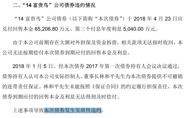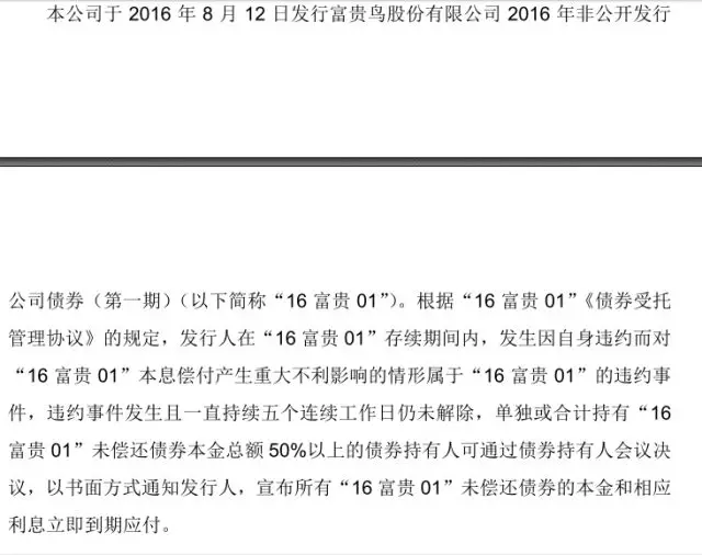 值得注意的是,富貴鳥(niǎo)目前尚有一只私募公司債“16富貴01”存續(xù),本次“14富貴鳥(niǎo)”違約還可能觸發(fā)“16富貴01”提前到期,而“14富貴鳥(niǎo)”和“16富貴01”發(fā)行規(guī)模合計(jì)21億元。