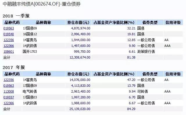 但還是有機(jī)構(gòu)不慎踩雷。Wind數(shù)據(jù)顯示,截至2018年一季報(bào)公布,中融基金管理有限公司的基金——中融融豐純債仍持有“14富貴鳥(niǎo)”。數(shù)據(jù)表明,2017年報(bào)公告中,該基金持有“14富貴鳥(niǎo)”市值約1407. 6萬(wàn)元,占基金資產(chǎn)比例47.2%;至2018年一季度,該基金持有“14富貴鳥(niǎo)”的市值已降至194.4萬(wàn)元,占基金資產(chǎn)比例12.85%。