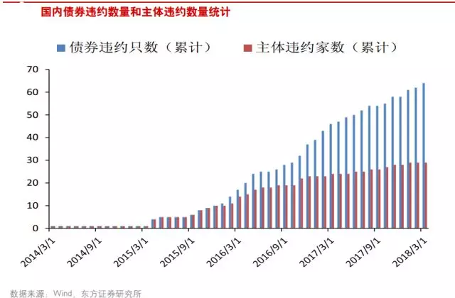 截至2018年3月底,共有64只公募債發(fā)生70次違約: