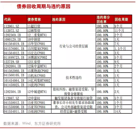 具體來(lái)看,通過(guò)債務(wù)重組實(shí)現(xiàn)回收的債券包括12湘鄂債、12中富01(追加擔(dān)保)、12二重集MTN1(債務(wù)轉(zhuǎn)移)、10中鋼債(債務(wù)延期)、16博源SCP001、12珠中富MTN1(追加擔(dān)保等),回收周期在1天-11個(gè)月之間,平均為3.4個(gè)月。