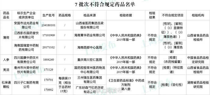 中證網(wǎng)訊 上海發(fā)布5月13日消息,國家藥品監(jiān)督管理局通報(bào):標(biāo)示為安國市遠(yuǎn)光藥業(yè)有限公司、江西彭氏國藥堂飲片有限公司、海南國瑞堂中藥制藥有限公司生產(chǎn)的3批次薄荷、標(biāo)示為四川固康中藥飲片有限責(zé)任公司生產(chǎn)的1批次人參等7批次藥品不符合規(guī)定。不符合規(guī)定項(xiàng)目為農(nóng)藥殘留量、性狀等。