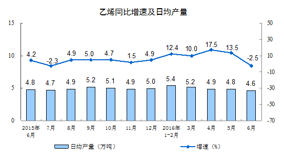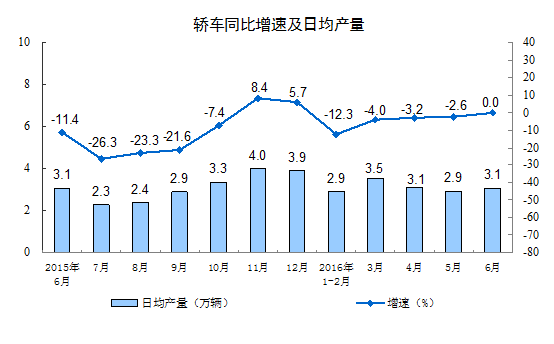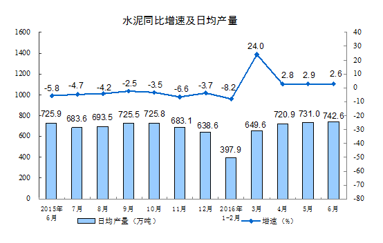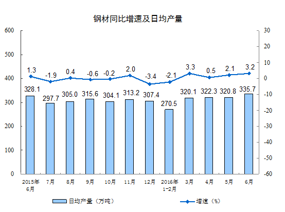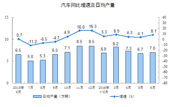 分產(chǎn)品看,6月份,589種產(chǎn)品中有347種產(chǎn)品同比增長。其中,鋼材10072萬噸,同比增長3.2%;水泥22278萬噸,增長 2.6%;十種有色金屬443萬噸,下降1.2%;乙烯139萬噸,下降2.5%;汽車211.3萬輛,增長8.1%;轎車92.1萬輛,與去年同期持平;發(fā)電量4908億千瓦時,增長2.1%;原油加工量4508萬噸,增長3.2%。