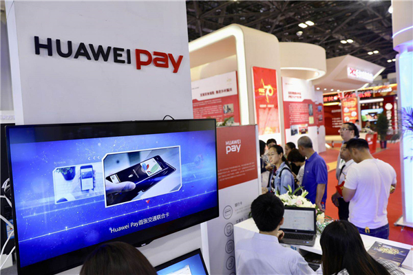 圖為觀(guān)眾在華為展臺(tái)體驗(yàn)華為pay。本報(bào)記者 車(chē)亮 攝