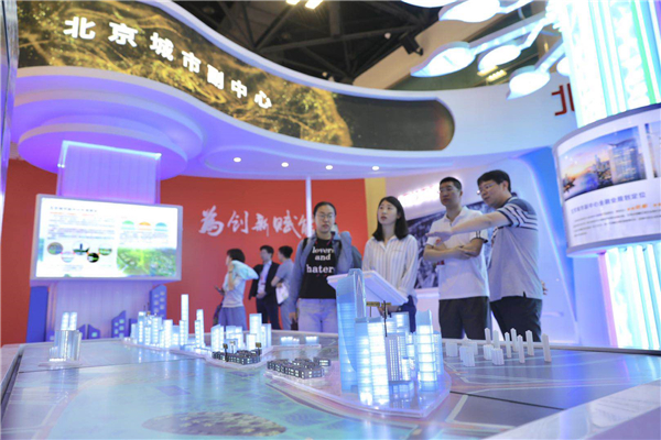 圖為觀(guān)眾在參觀(guān)北京市副中心展臺(tái)。本報(bào)記者 車(chē)亮 攝