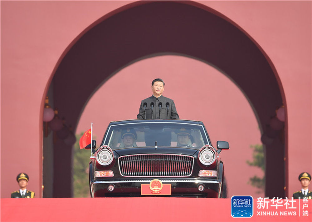↑10月1日,慶祝中華人民共和國成立70周年大會在北京天安門廣場隆重舉行。中共中央總書記、國家主席、中央軍委主席習(xí)近平發(fā)表重要講話并檢閱受閱部隊(duì)。這是習(xí)近平乘坐檢閱車,經(jīng)過金水橋,駛上長安街。新華社記者 燕雁 攝