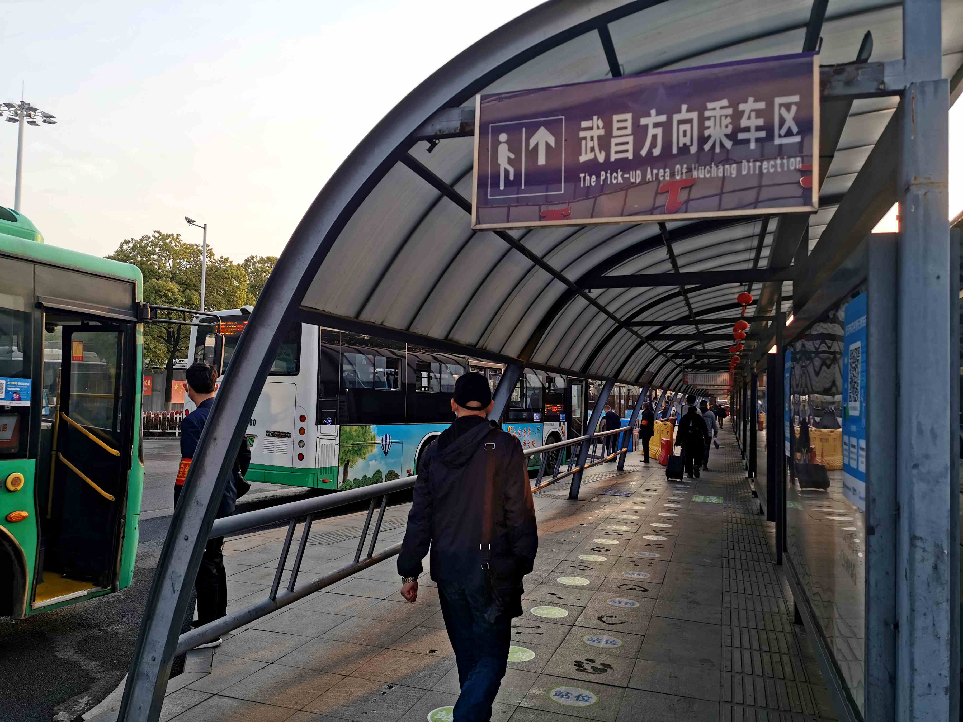 在武漢站東出站口外的公交場站,中國證券報記者看到,有不少公交車?浚却每汀C恳惠v公交車的上車門外都安排有一名安全員,對乘客進(jìn)行掃碼等安全檢測。整個公交場站經(jīng)過了嚴(yán)密消毒,有較濃的84消毒水氣味。(攝影/本報記者 王興亮)