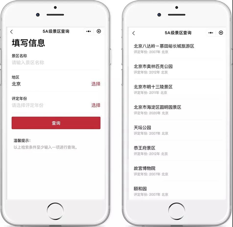 進入服務(wù)后,只需選擇出行地區(qū),即可查詢該地區(qū)所有5A