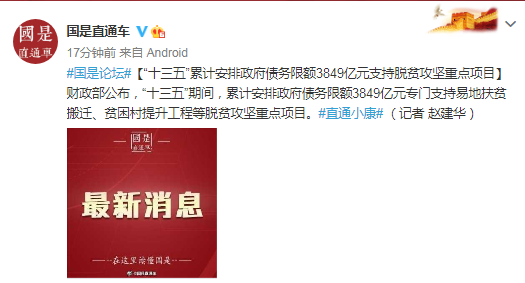 “十三五”累計(jì)安排政府債務(wù)限額3849億元支持脫貧攻堅(jiān)重點(diǎn)項(xiàng)目