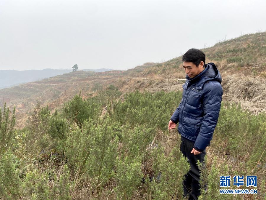 1月27日,駐麻溪口村幫扶工作隊隊長段吉廣在村里中藥材種植基地里查看中藥長勢。新華社記者 柳王敏 攝