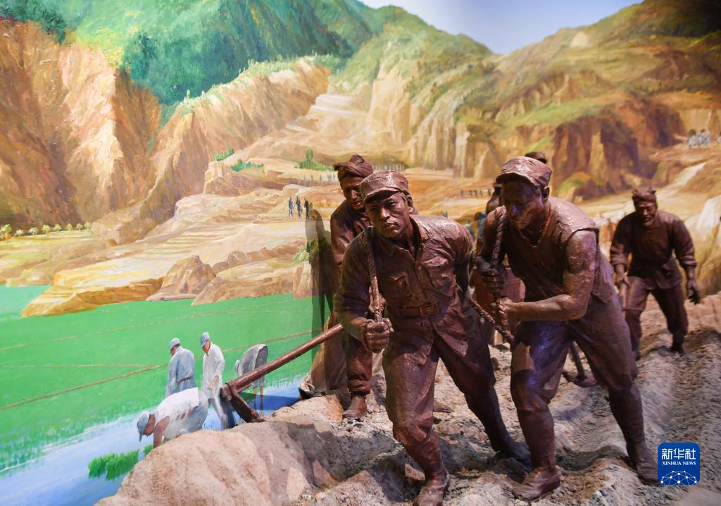 南泥灣大生產(chǎn)紀念館內(nèi)的雕塑作品(7月22日攝)。新華社記者 張博文 攝