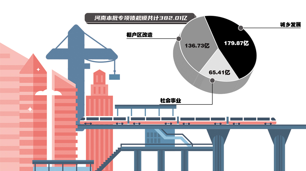 根據(jù)披露的信息顯示,河南本批專(zhuān)項(xiàng)債規(guī)模共計(jì)382.01億元,主要用于城鄉(xiāng)發(fā)展、社會(huì)事業(yè)、棚戶區(qū)改造領(lǐng)域,規(guī)模分別為179.87億元、65.41億元和136.73億元。