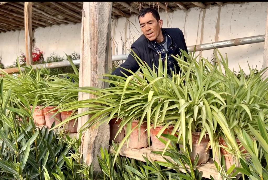 寒冬臘月,室外氣溫達零下10多攝氏度,奧圖拉庫勒達西村農(nóng)民艾力·艾合買提家前院450平方米的大棚里,卻是春意盎然,20多種花卉苗生機勃勃!艾F(xiàn)在南疆農(nóng)村老百姓很喜歡買花擺在家里,像這種艾德萊斯花、每日春、蘆葦花,賣得特別好。”他告訴記者,今年打算繼續(xù)擴大花卉品種。