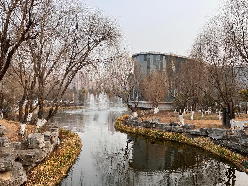 循環(huán),讓這座缺水城市也有了親水之景。陶輝的身后,冬天的迎賓公園同樣有著小橋流水的景觀,供市民活動(dòng)的小廣場旁噴泉汩汩,而這些河道補(bǔ)水、景觀用水都來自不斷被循環(huán)利用的再生水。