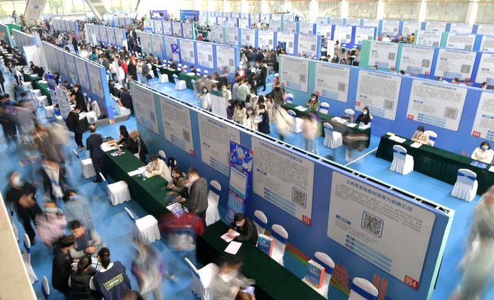 這是在南昌大學舉行的“百場校招”活動現(xiàn)場(2021年10月23日攝)。新華社記者 彭昭之 攝