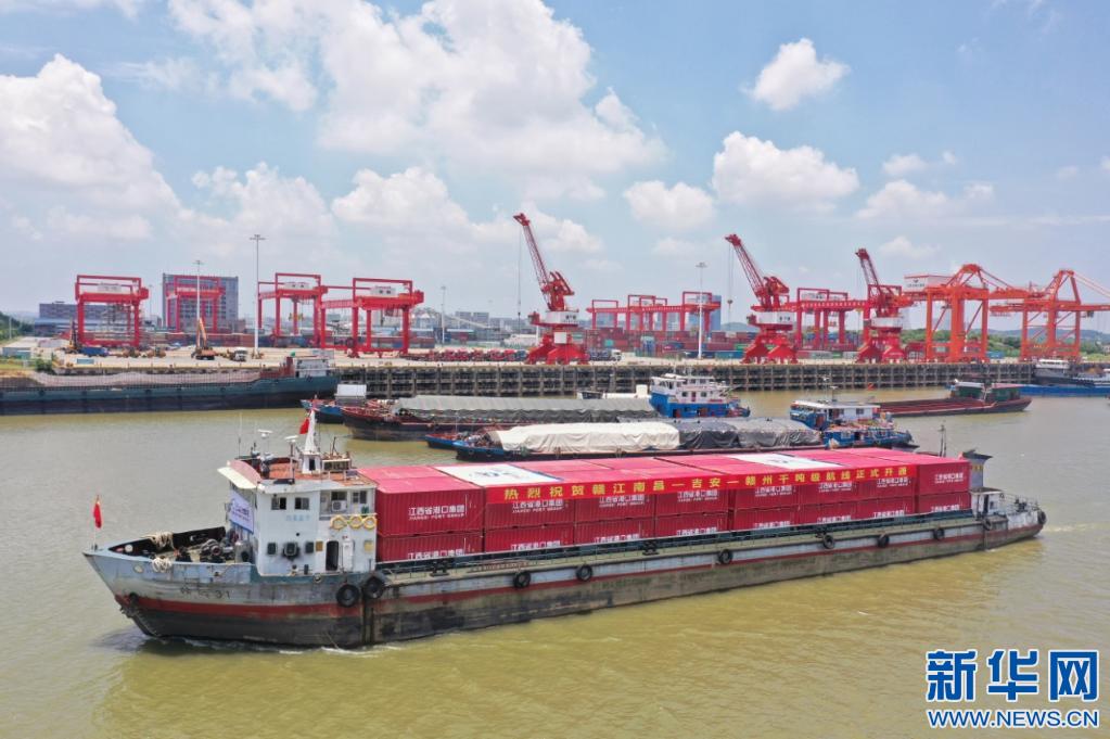 2021年6月,贛江南昌——吉安——贛州千噸級航線正式開通。新華網(wǎng)發(fā)(江西省港口集團(tuán)供圖)