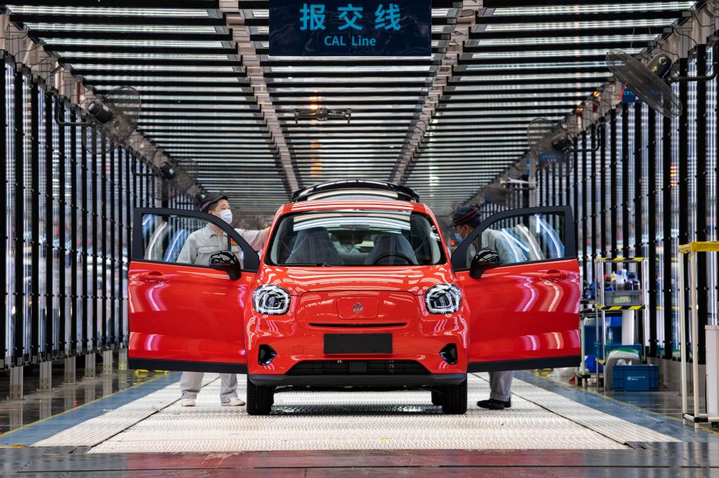 4月26日,在浙江省金華市新能源汽車小鎮(zhèn)零跑汽車有限公司車間里,新能源汽車有序下線。 新華社發(fā)(胡肖飛 攝)