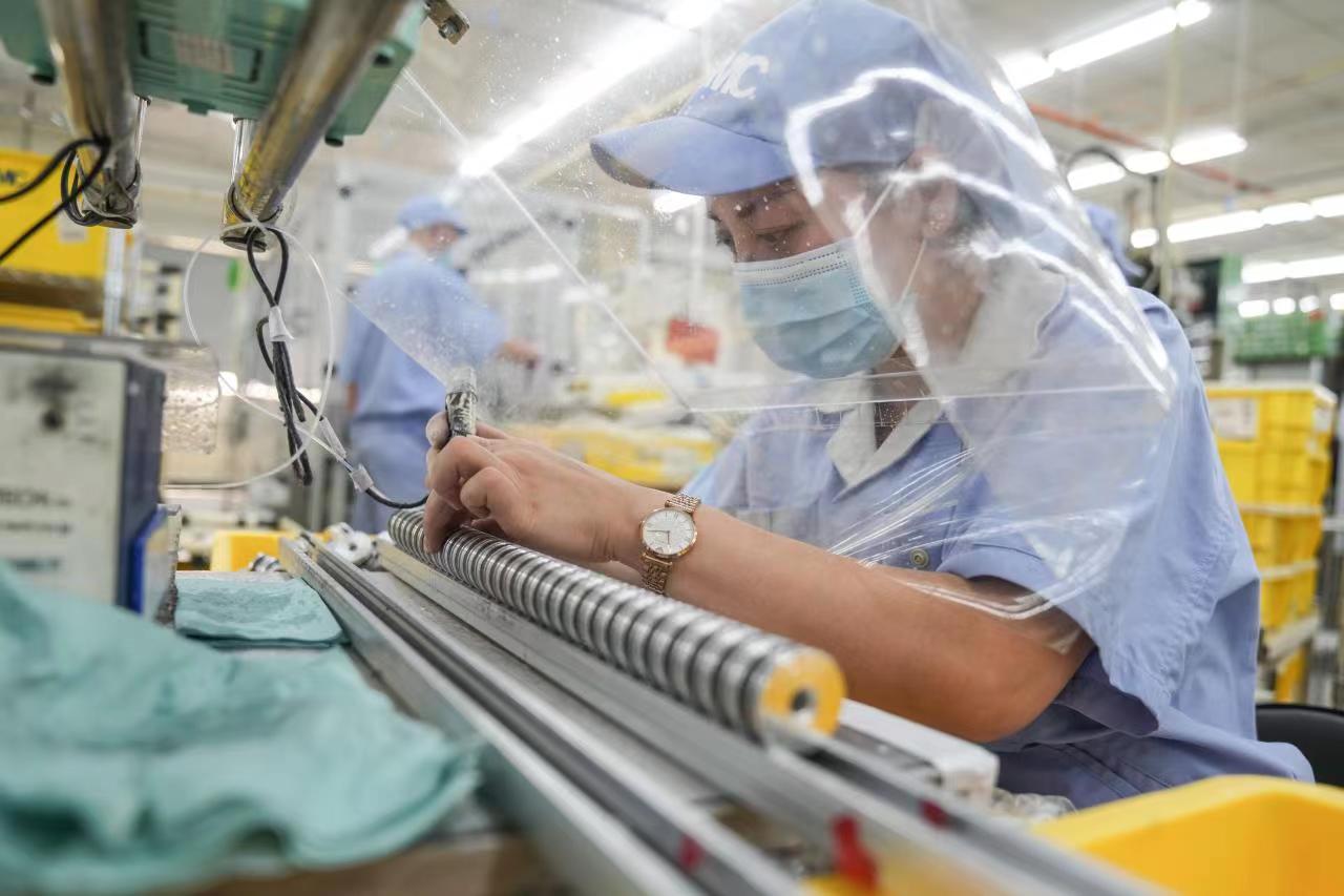 圖為在位于北京經(jīng)開區(qū)的SMC(中國)有限公司廠房內(nèi),工人正在工作。