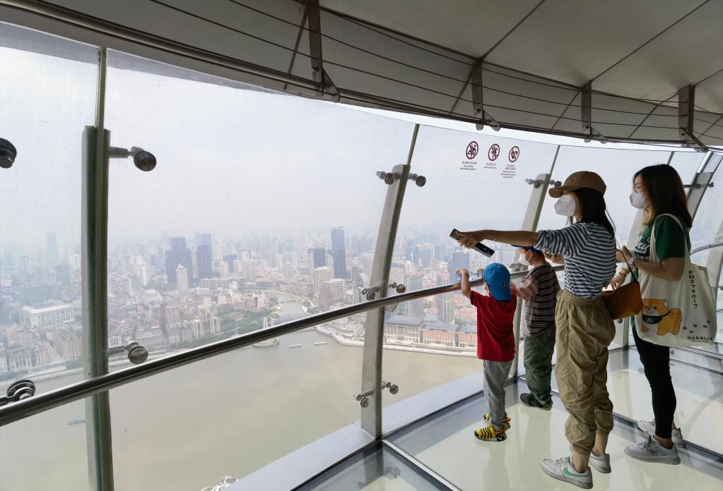 今年6月初,上海市民在東方明珠廣播電視塔上游覽。新華社記者 陳愛(ài)平 攝