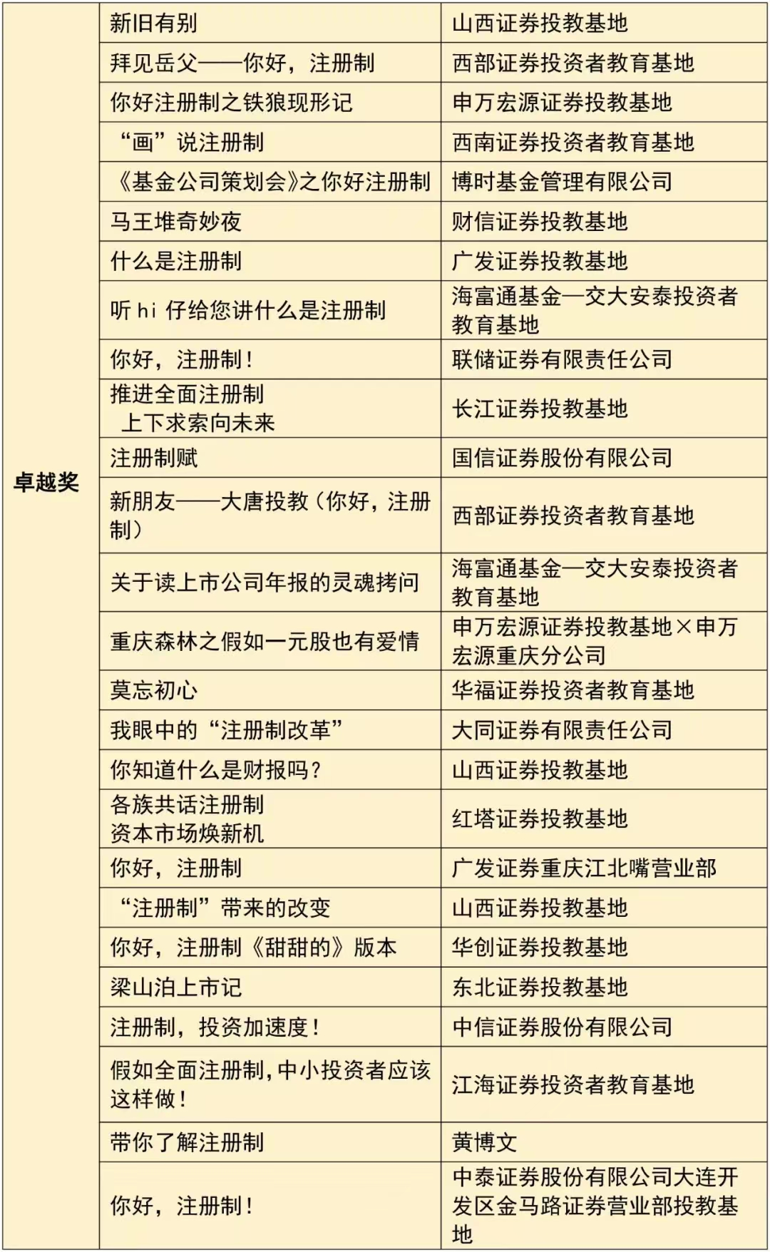 附“你好,注冊制!”短視頻大賽獲獎名單