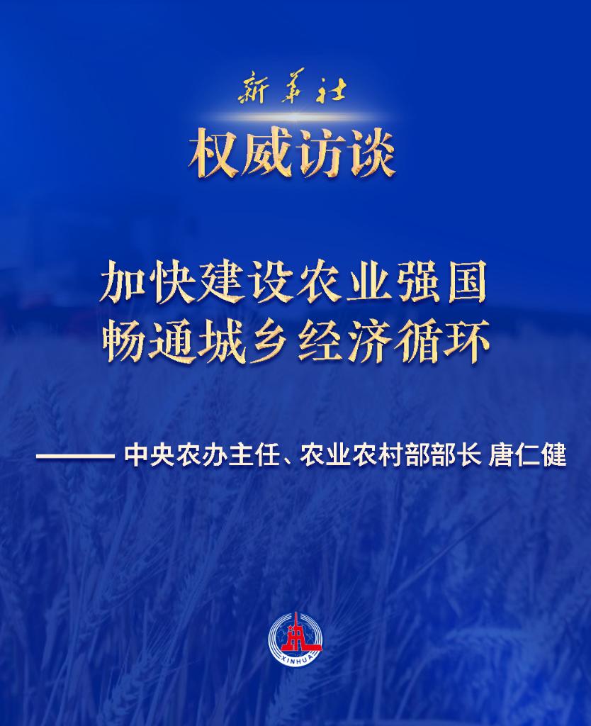加快建設農(nóng)業(yè)強國 暢通城鄉(xiāng)經(jīng)濟循環(huán)——訪中央農(nóng)辦主任、農(nóng)業(yè)農(nóng)村部部長唐仁健