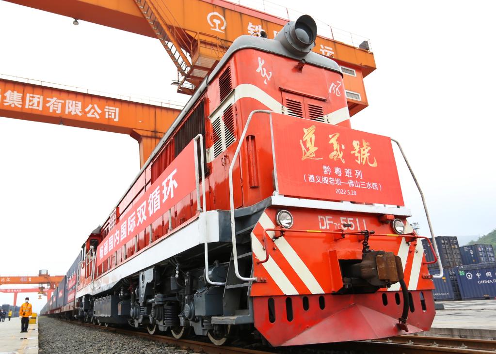 2022年5月20日,黔粵班列“遵義號”在貴州遵義閣老壩站等候發(fā)車。新華社記者 劉續(xù) 攝