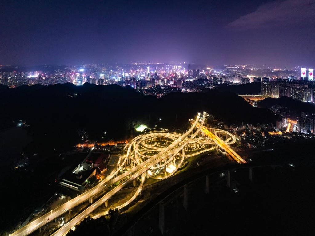 2月25日拍攝的貴陽黔春立交橋夜景(無人機照片)。新華社記者 劉續(xù) 攝