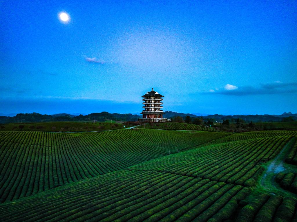 遵義市湄潭縣永興鎮(zhèn)月光下的“萬畝茶海”。新華社記者 歐東衢 攝