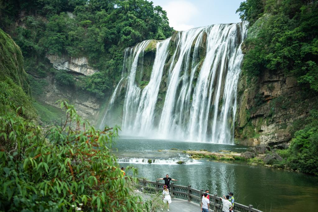 游客在黃果樹大瀑布參觀游覽。新華社記者 陶亮 攝