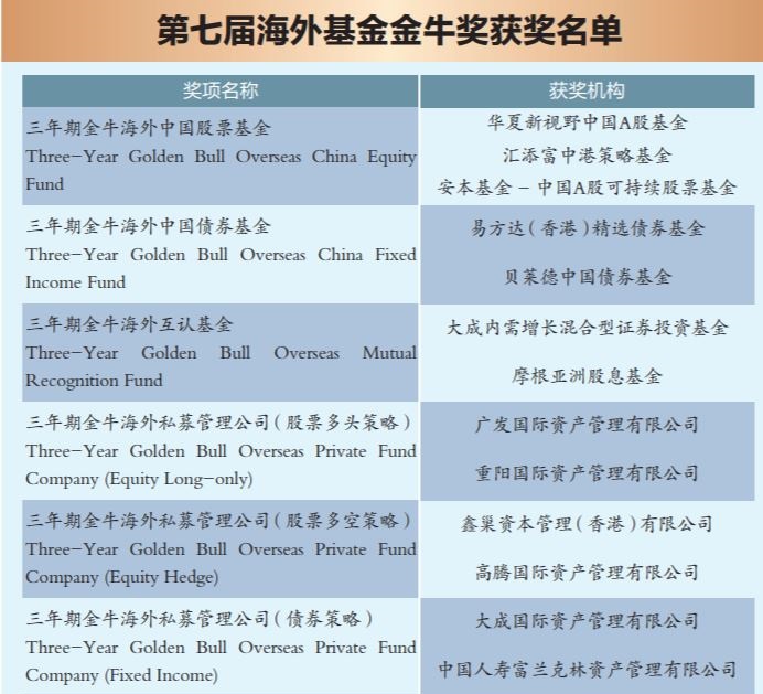 同日,第七屆海外基金金牛獎(jiǎng)榜單發(fā)布,7只海外中國基金、6家海外私募管理公司和4位投資經(jīng)理在市場的考驗(yàn)和同業(yè)的競爭中脫穎而出。