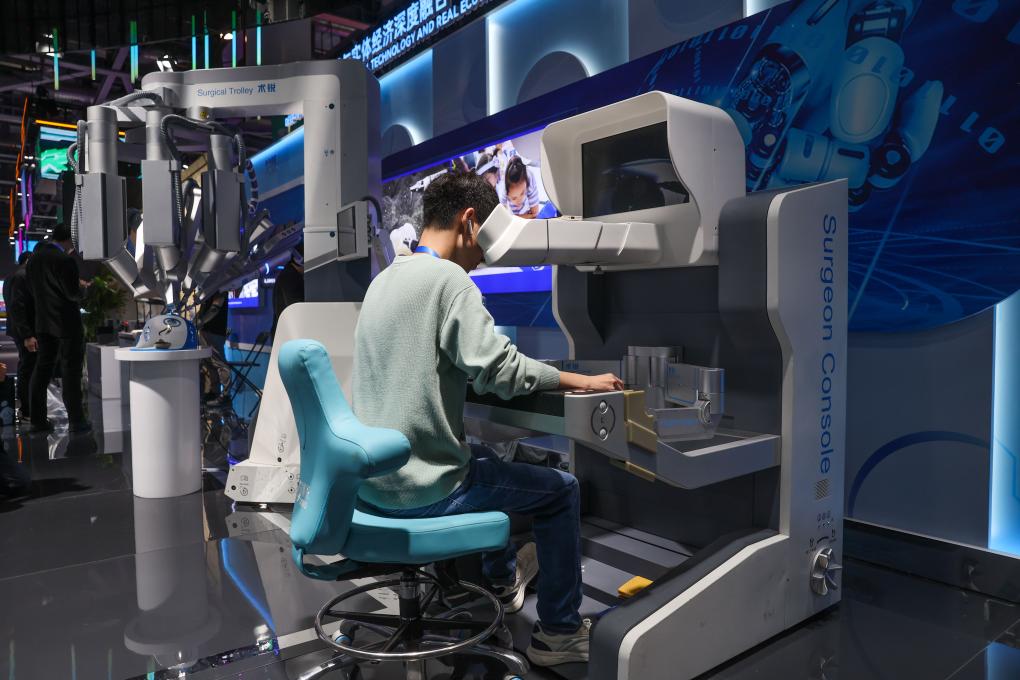 11月24日在第二屆全球數(shù)字貿(mào)易博覽會(huì)上拍攝的遠(yuǎn)程醫(yī)療手術(shù)設(shè)備。新華社記者 徐昱 攝