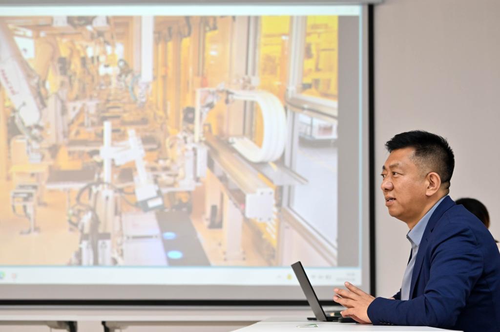 2023年12月28日,天津福萊迪科技發(fā)展有限公司朱奎鋒介紹公司情況。新華社記者 李然 攝