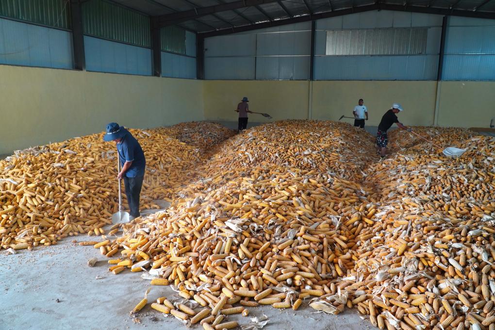2023年9月20日,在山東省新泰市禹村鎮(zhèn),農(nóng)戶在糧倉里存放剛收獲的玉米。(新華社記者徐速繪 攝)
