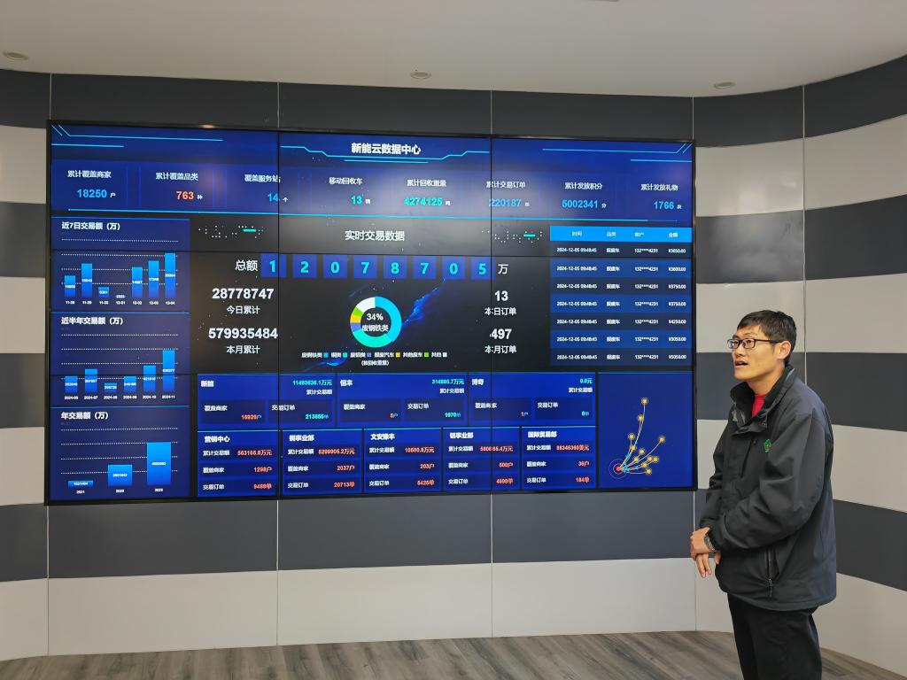 ??在子牙經(jīng)開區(qū)的“新能云數(shù)據(jù)中心”,巨大電子屏幕上實(shí)時(shí)顯示著新能公司與全國資源回收下游企業(yè)在銅、鋁等方面的訂單。目前,平臺線上交易商家已達(dá)18000余戶,輻射全國80%地區(qū),近3年累計(jì)回收各類再生資源400多萬噸,線上交易額近千億元。