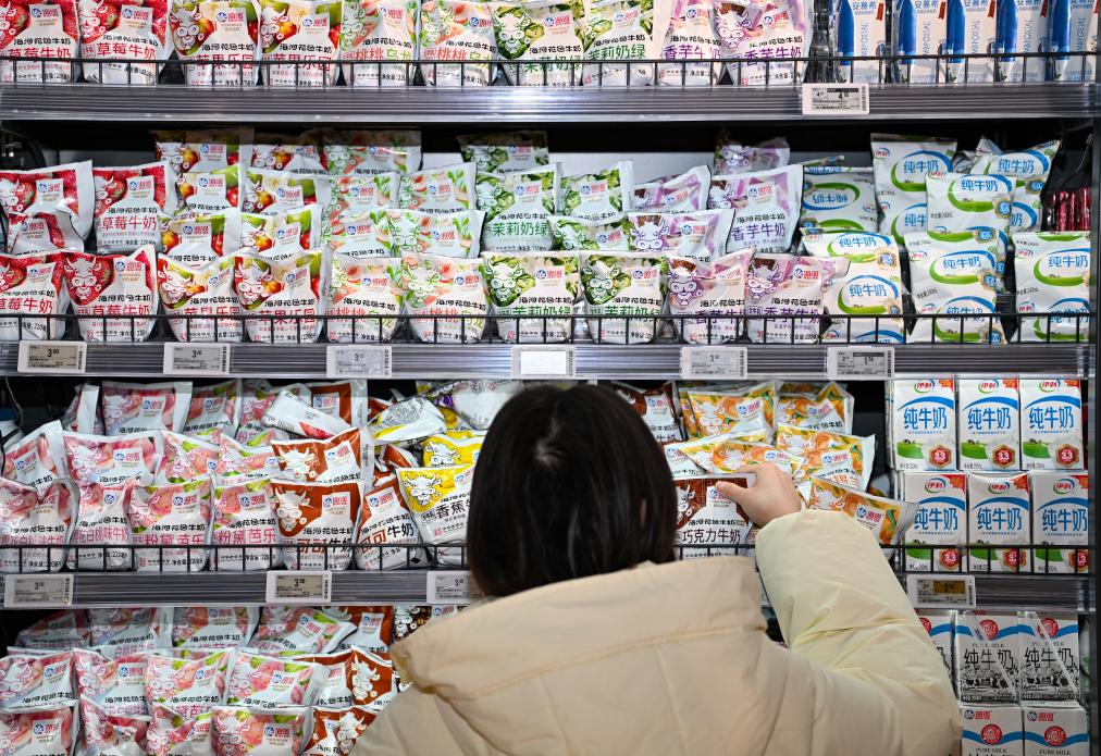 ??2月6日,顧客在天津一家超市選購海河牛奶。新華社記者 趙子碩 攝