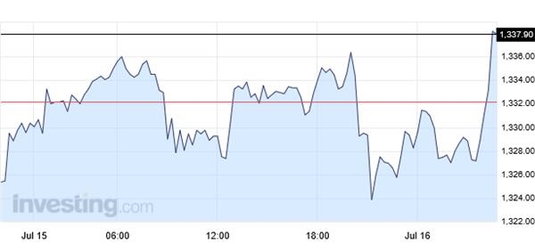 (8月到期的黃金期貨價(jià)格在土耳其軍事政變后,大幅上漲至1337.90美元/盎司)