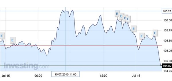 (日元對(duì)美元匯率收回部分此前跌幅,上漲至104.89)