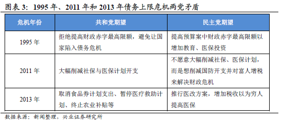 當國會和政府、共和黨和民主黨將提高債務(wù)上限與預(yù)算相關(guān)內(nèi)容,如稅收、削減開支等內(nèi)容捆綁在一起談判時,債務(wù)上限問題就會因為摻雜政治分歧而變得復(fù)雜。利用提高國家債務(wù)上限的迫切需要,提限就變?yōu)辄h派影響財政政策的工具。