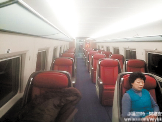 羊城晚報訊 記者尹安學、實習生肖玫麗報道:好不容易買到車票,沒想到上車后發(fā)現,整個車廂空蕩蕩(見圖)!25日,北京一老總從北京南站坐高鐵到安徽合肥,遭遇咄咄怪事。