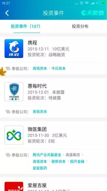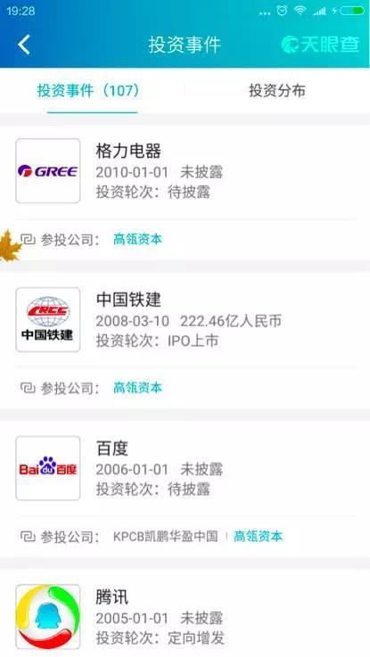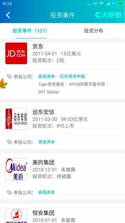 幫主在天眼查上看到,高瓴資本的投資事件一共107個: