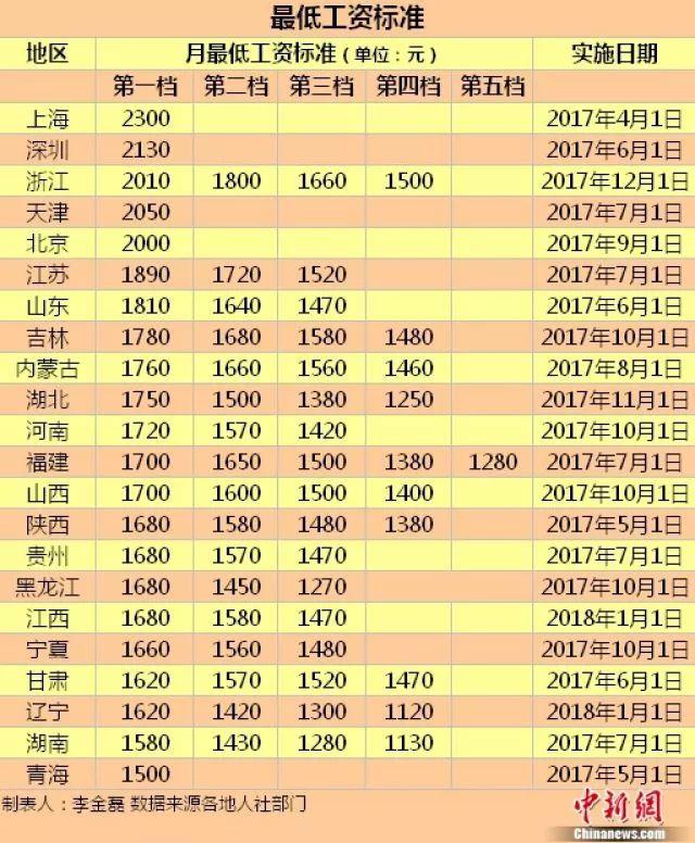 最低工資標準上調后,目前,上海、深圳、浙江、天津、北京這五個地區(qū)的月最低工資標準邁入2000元大關。