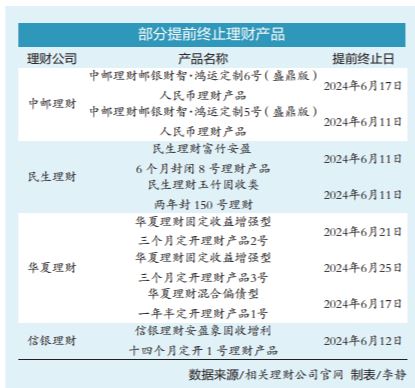 除了中郵理財和民生理財外,記者還了解到,信銀理財、華夏理財、交銀理財等理財公司也在6月份提前終止旗下部分理財產品。