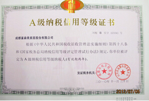 四川省成都市國家稅務局、成都市地方稅務局授予“A級納稅