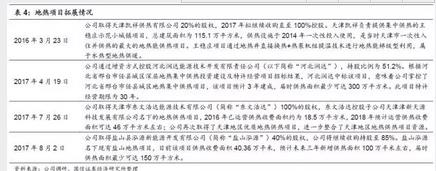 地?zé)崮芄犷I(lǐng)域:2015年以前,公司主要在北京地區(qū)做天然氣供暖工作,2015年開(kāi)始在天津、河北開(kāi)拓深層地?zé)崮芄針I(yè)務(wù)。據(jù)相關(guān)數(shù)據(jù),全國(guó)的深層地?zé)崮芄崦娣e是7860萬(wàn)平米,天津市是2750萬(wàn)平米,占了全國(guó)面積的三分之一。深層地?zé)崛∽缘乇?500米以下的地?zé)釋?公司在天津市擁有地?zé)崮芄嵬醴(wěn)莊示范小城鎮(zhèn)項(xiàng)目,總建筑面積為115.1萬(wàn)平方米,其中住宅建筑面積為104.58萬(wàn)平方米,采用深層地?zé)崮芴菁?jí)利用模式為示范鎮(zhèn)進(jìn)行供熱,該項(xiàng)目最深地?zé)峋@深3800米,出水量110噸/小時(shí),出水溫度98攝氏度,可滿足30-40萬(wàn)平米的供熱需求。該項(xiàng)目供熱設(shè)施于2014年投入使用,是天津市一次性完成投資并供熱的最大單體地?zé)崮芄犴?xiàng)目。王穩(wěn)莊項(xiàng)目通過(guò)地?zé)峋苯訐Q熱+熱泵機(jī)組提溫技術(shù)進(jìn)行地?zé)崮芴菁?jí)型利用,屬于水熱型地?zé)峁┡。該?xiàng)目完全實(shí)現(xiàn)了清潔能源利用,污染零排放,社會(huì)效益和經(jīng)濟(jì)效益非常明顯。深層地?zé)崮芾糜休^高的技術(shù)門(mén)檻,深層地質(zhì)情況復(fù)雜,沒(méi)有詳細(xì)地下勘探資料和專(zhuān)業(yè)的技術(shù)指導(dǎo)將面臨很大的投資風(fēng)險(xiǎn)。公司與天津地?zé)峥辈殚_(kāi)發(fā)設(shè)計(jì)院建立了深度的戰(zhàn)略合作,雙方設(shè)立了合資公司(公司持股86.5%),為公司提供了技術(shù)保障!吨腥A人民共和國(guó)可再生能源法》明確定義地?zé)崮苁乔鍧嵖稍偕茉?地?zé)崮芄岵粫?huì)產(chǎn)生任何的碳排放,受?chē)?guó)家政策鼓勵(lì)支持。目前,供熱100萬(wàn)平米的建筑面積,一個(gè)采暖季須煤炭25000-26000噸,或天然氣650-800萬(wàn)立方米,而地?zé)崮芄醿H需350-400萬(wàn)度電,經(jīng)濟(jì)效益相對(duì)更好。