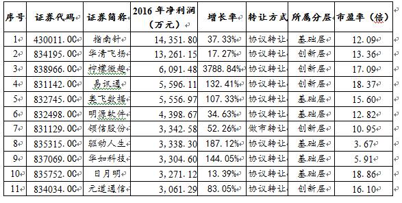 表1:凈利潤(rùn)3000萬(wàn)以上、市盈率20倍以內(nèi)的擬IPO新三板企業(yè)