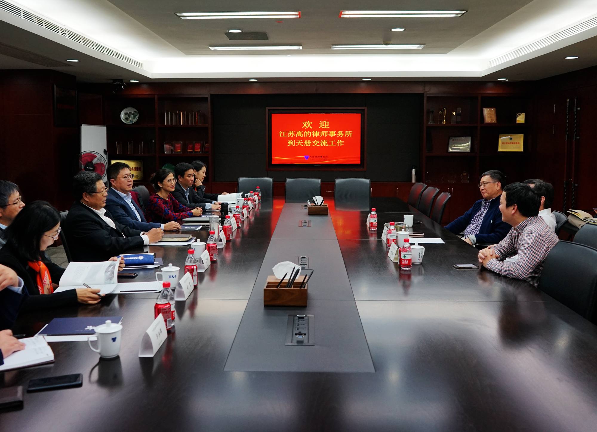 10月23日,江蘇高的律師事務(wù)所管理團(tuán)隊(duì)一行8人在江蘇省律師協(xié)會(huì)會(huì)長(zhǎng)薛濟(jì)民、事務(wù)所主任郭少偉帶領(lǐng)下到天冊(cè)所考察交流。