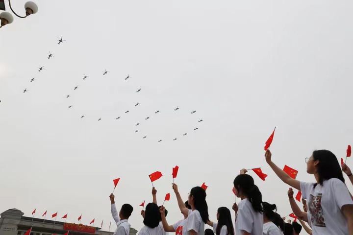 首頁(yè)>綜合專題>奮斗百年路 啟航新征程>焦點(diǎn)圖片 慶祝中國(guó)共產(chǎn)黨成立100周年大會(huì)隆重舉行 新華社2021-07-01 09:12 新華社照片,北京,2021年7月1日 新華社記者 張晨 攝 7月1日上午,慶祝中國(guó)共產(chǎn)黨成立100周年大會(huì)將在北京天安門廣場(chǎng)隆重舉行。這是飛行慶祝表演。