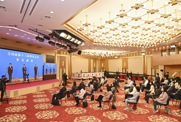 首頁>綜合專題>2021全國兩會>兩會看點(diǎn) 全國政協(xié)十三屆四次會議第二場“委員通道” 委員接受采訪 新華社2021-03-07 08:35 3月7日,全國政協(xié)十三屆四次會議第二場“委員通道”采訪活動在北京人民大會堂新聞發(fā)布廳舉行。 這是分會場。 新華社記者 賀長山 攝