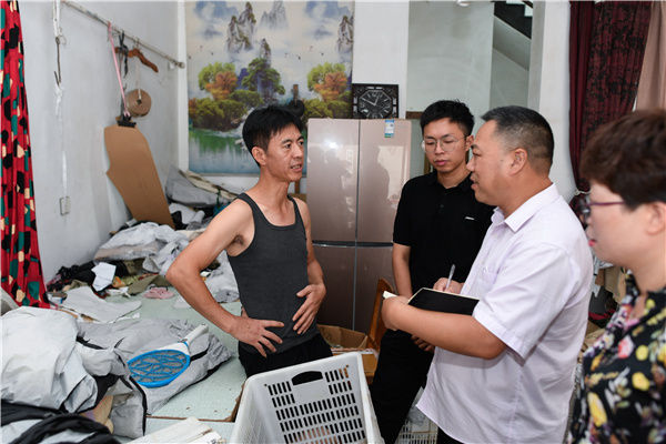 在浙江省衢州市衢江區(qū)杜澤鎮(zhèn)老街,服裝來(lái)料加工小微企業(yè)主周建斌(左一)向信貸人員介紹經(jīng)營(yíng)情況(2020年9月10日攝)。浙江省擔(dān)保集團(tuán)有限公司推出多項(xiàng)服務(wù),幫助解決小微企業(yè)和“三農(nóng)”融資難融資貴問(wèn)題。新華社記者 黃宗治 攝