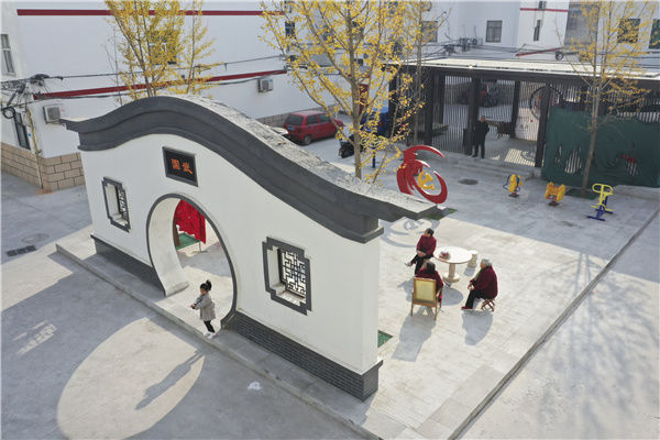 居民在河南省焦作市溫縣一處改造后的小區(qū)內(nèi)休閑(2020年11月15日攝,無(wú)人機(jī)照片)。新華社發(fā)(徐宏星 攝)